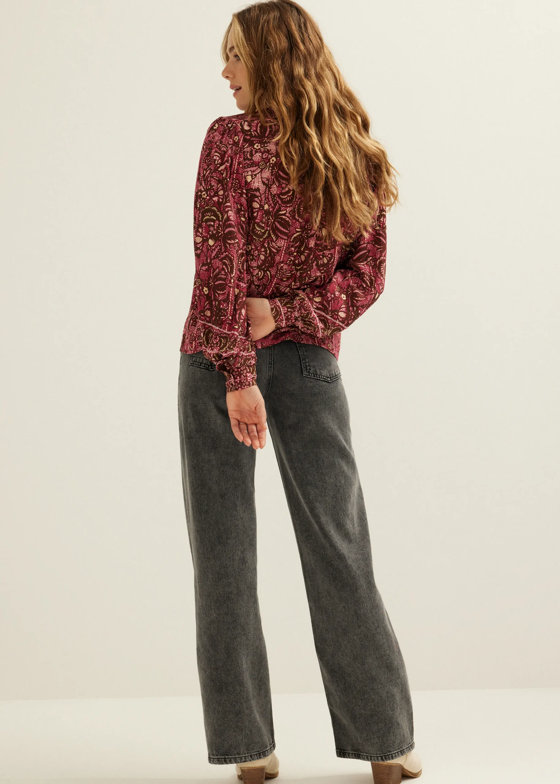 Blouse bloemenprint met lange mouwen, een v-hals en knoopsluiting. De blouse is voorzien van een bloemenprint en een boord bij de pols.