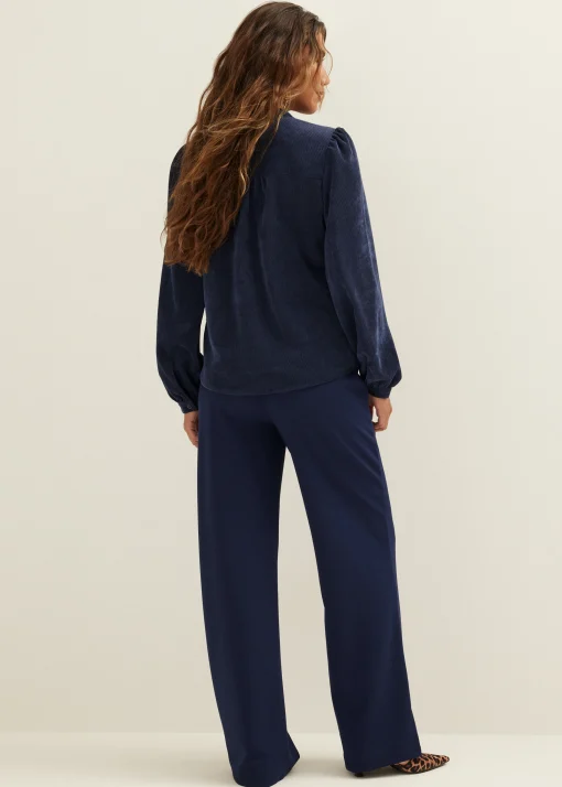 De blouse heeft een v-hals, lange mouwen en een knoopsluiting. De blouse wordt gekenmerkt door broderie details aan de voorzijde en de corduroy stof. Let op! Voor de perfecte pasvorm adviseren wij een maat kleiner.