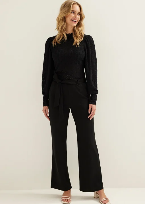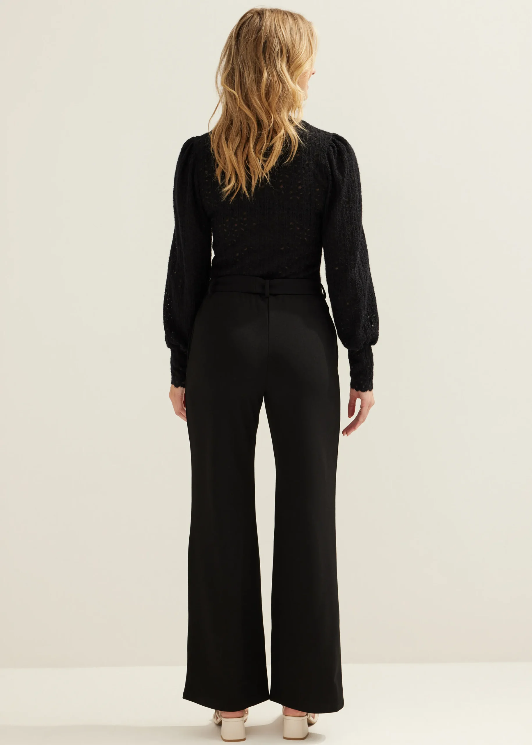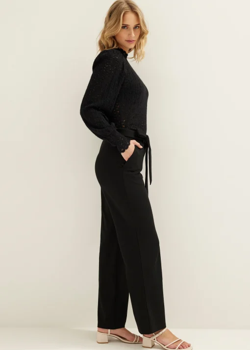 Broek met high-waist pasvorm met elastische band en los ceintuur. De broek heeft rechte pijpen en twee steekzakken.