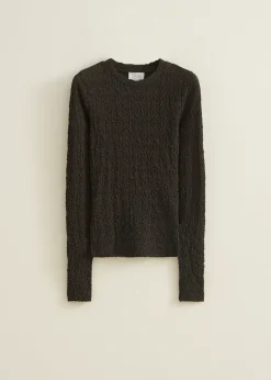 Kanten top met aansluitende pasvorm, lange mouwen en een ronde hals. Bij de hals is de top voorzien van een boord.