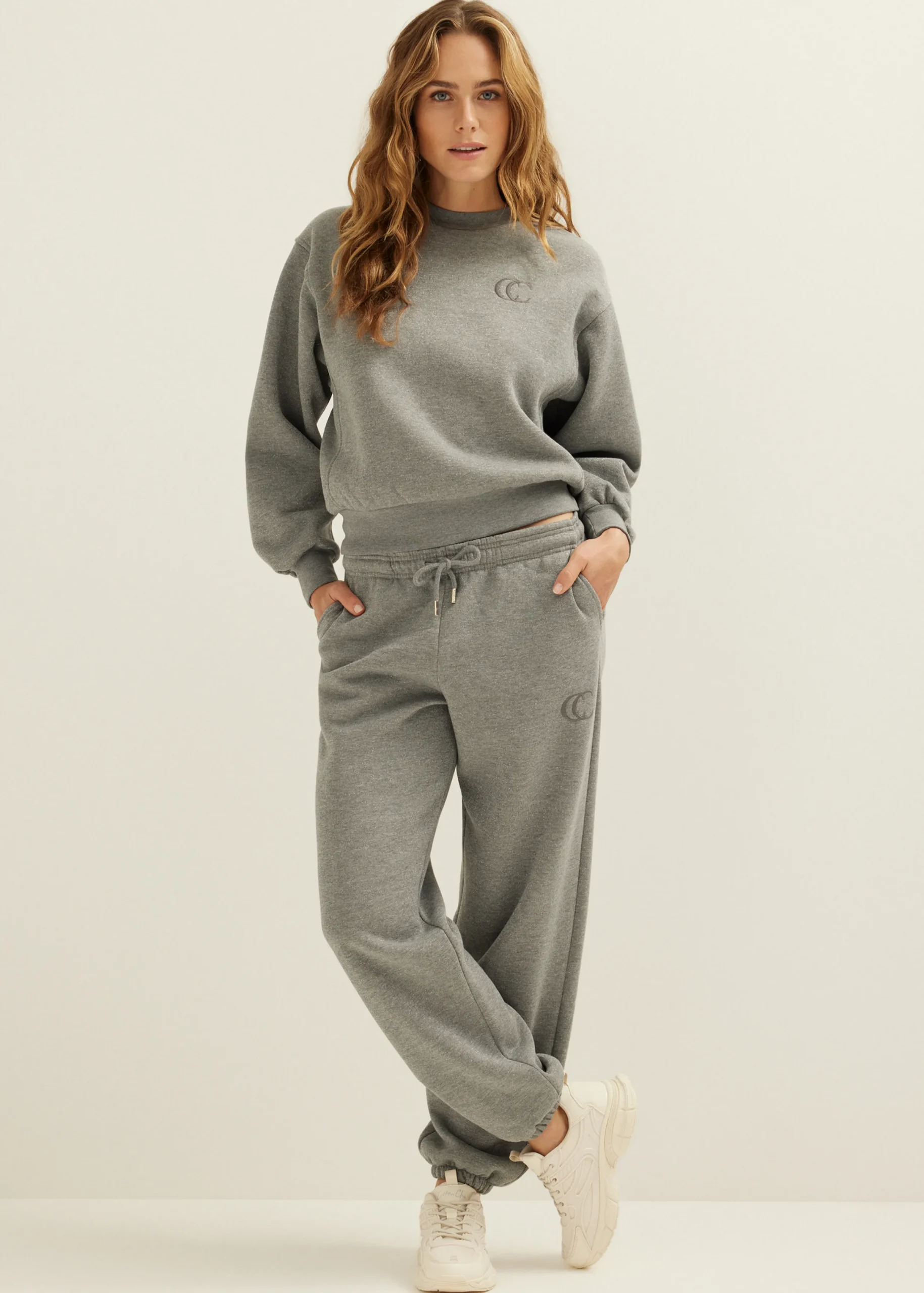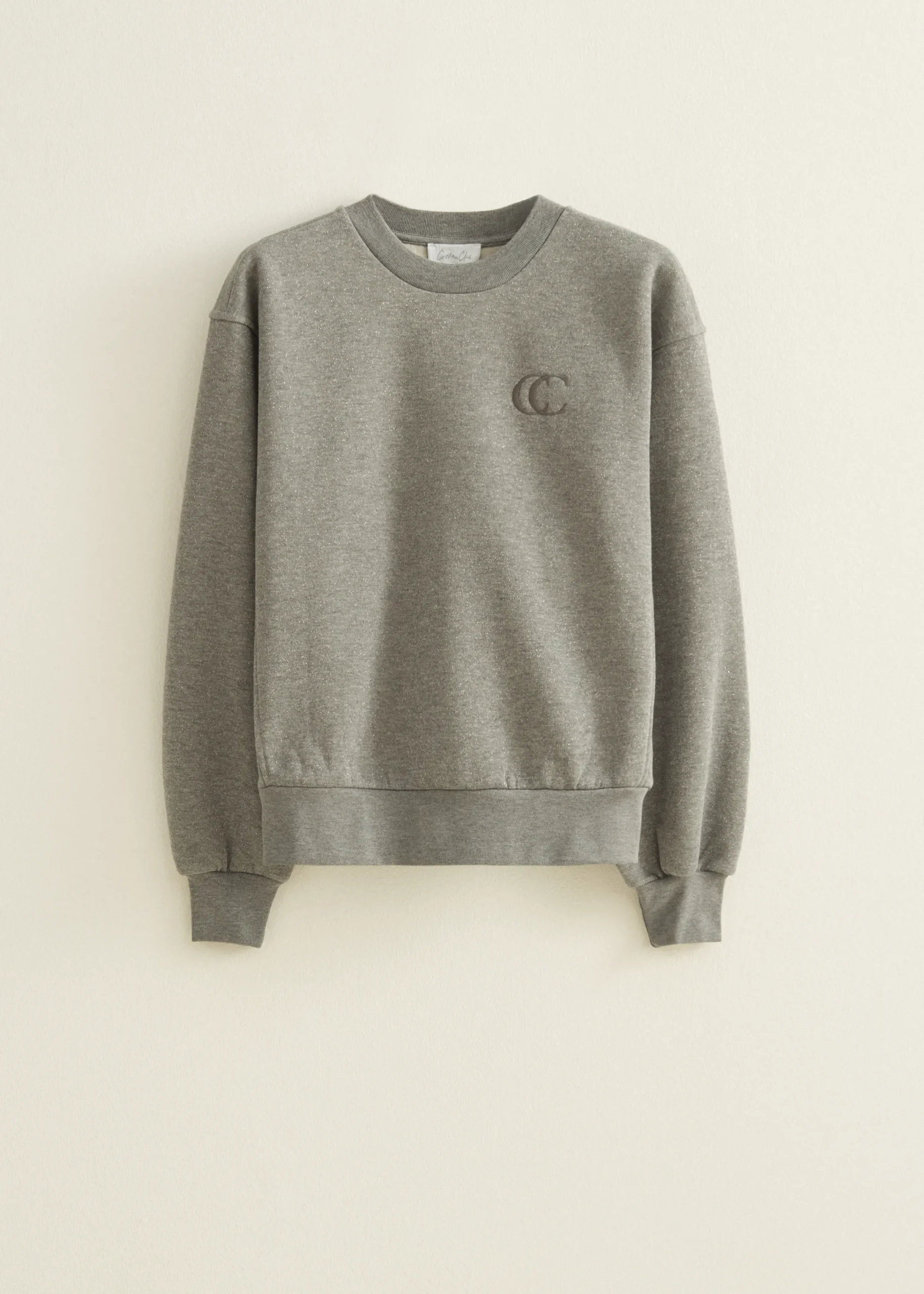 Sweater met glitter effect en een geborduurd merk logo op de borst. De sweater heeft lange mouwen, een ronde hals en is voorzien van een boord aan de onderkant, bij de mouwen en de hals.