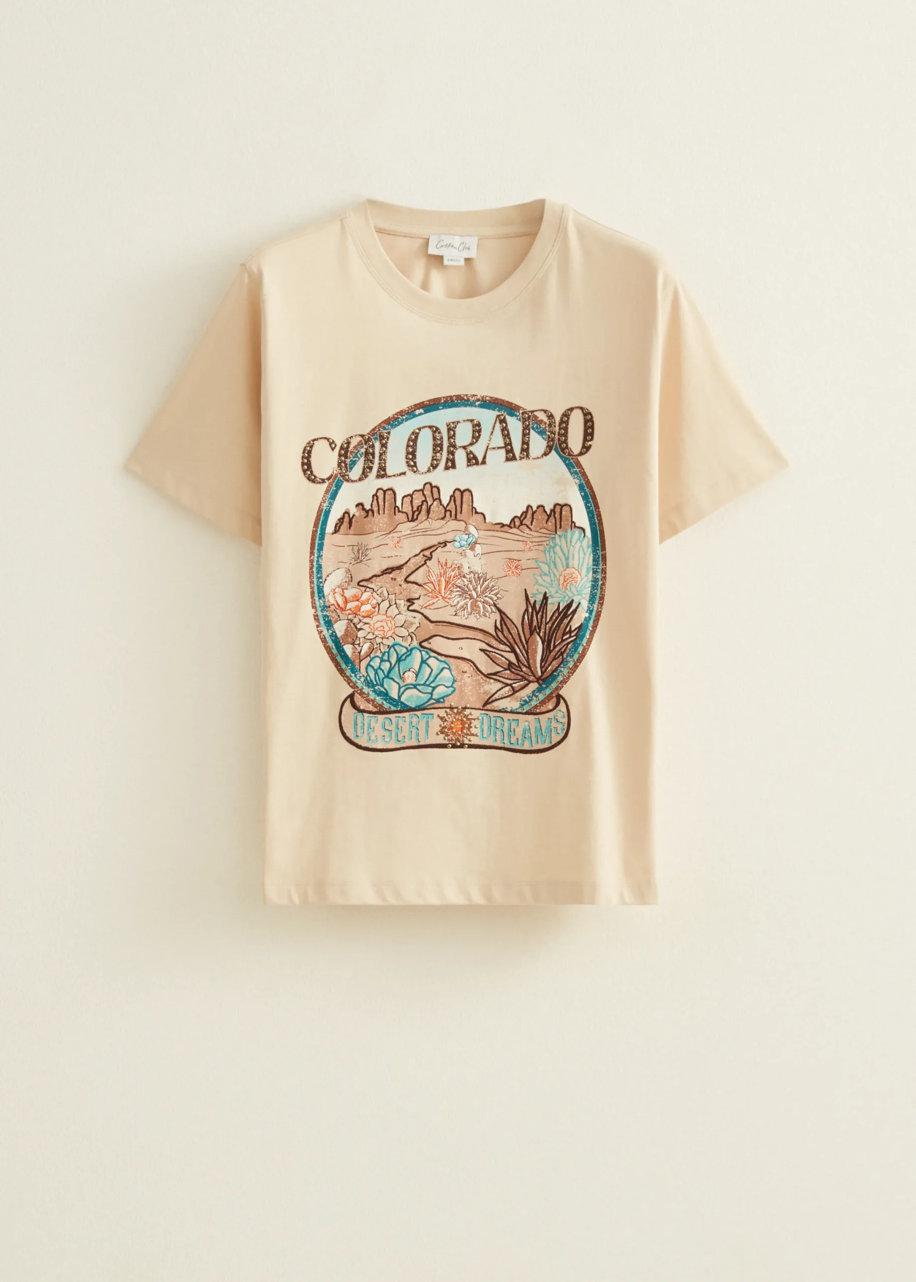 T-shirt met lange mouwen, een ronde hals en een reguliere pasvorm. Het T-shirt is voorzien van een print aan de voorzijde. De print is geïnspireerd op de staat Colorado.