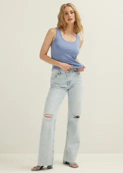 Basic singlet breed met kant van biologisch katoen, ronde hals en brede schouderbandjes. De singlet heeft een getailleerde pasvorm. Let op! Voor de perfecte pasvorm adviseren wij een maat kleiner.