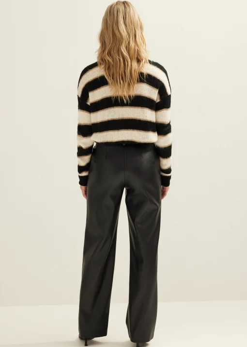 Imitatieleren broek met hoge taille, recht model en een knoop- en ritssluiting. Let op! Voor de perfecte pasvorm adviseren wij een maat groter.