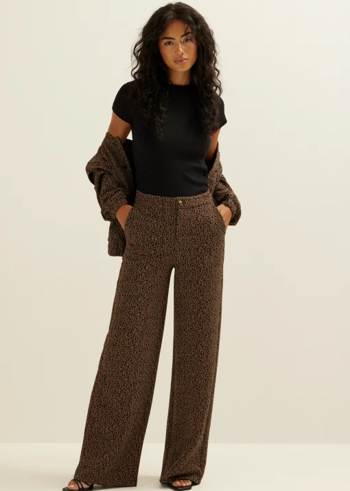 Pantalon met hoge taille en een recht model. De pantalon heeft een knoop- en ritssluiting, twee steekzakken aan de voorzijde en wordt gekenmerkt door de jacquard geweven stof met lurex details. Let op! Wij adviseren een maat groter voor de perfecte pasvorm.